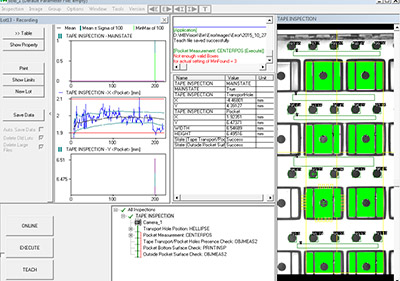 CT8/24设备自带的视觉检测系统,主要检测尺寸:A0、B0、P2、F,同时还可检测载带表面及底部是否存在不良等问题。具有准确度高、稳定性强、误报率低等特性。