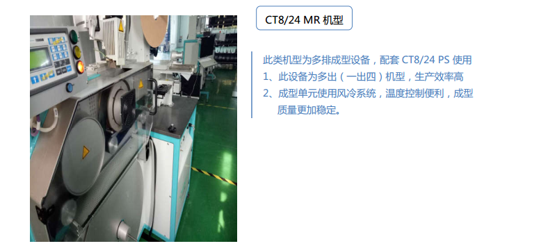 CT8/24 MR型设备即多出载带成型设备,可生产8~24mm宽载带。最高可生产1000M/H。